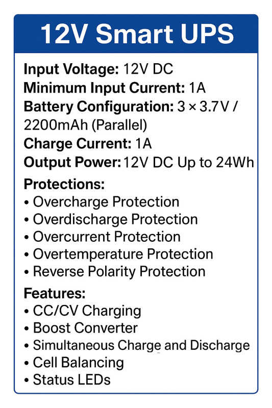 این یو پی اس کوچک و کارآمد با ولتاژ خروجی 12 ولت طراحی شده و بهترین انتخاب برای دستگاههایی است که با مصرف کمتر از یک آمپر کار میکنند. مناسب برای کسبوکارها، دفاتر اداری، فروشگاهها و هر جایی که نیاز به برق پایدار و بدون وقفه دارید.
